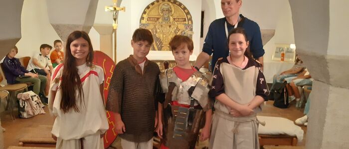 Zum Abschluss des HSU-Themas „Römer“ marschierten die 4. Klassen nach Regensburg.
